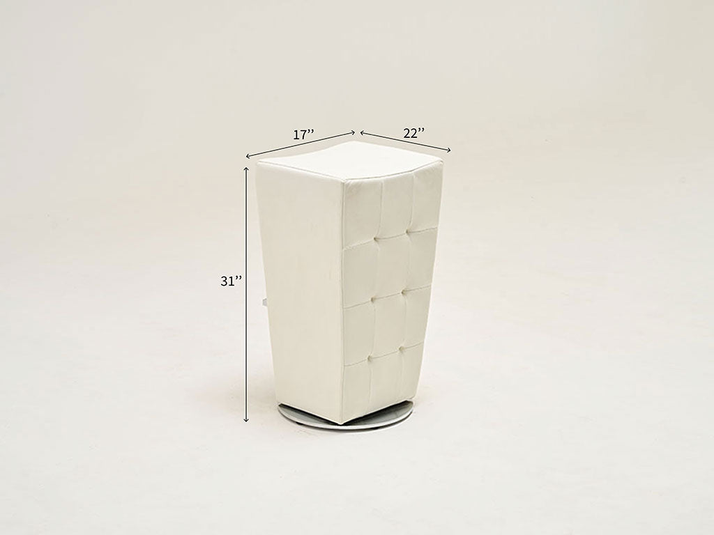 Introducing bar stool model 8417, a chic and modern seating option that combines the comfort of a pouf with the sophistication of leather upholstery. This sleek stool features a minimalist design without back support, offering a versatile and stylish addition to any bar or kitchen counter. Available in two classic colors, black and white, the 8417 bar stool effortlessly complements any decor style.