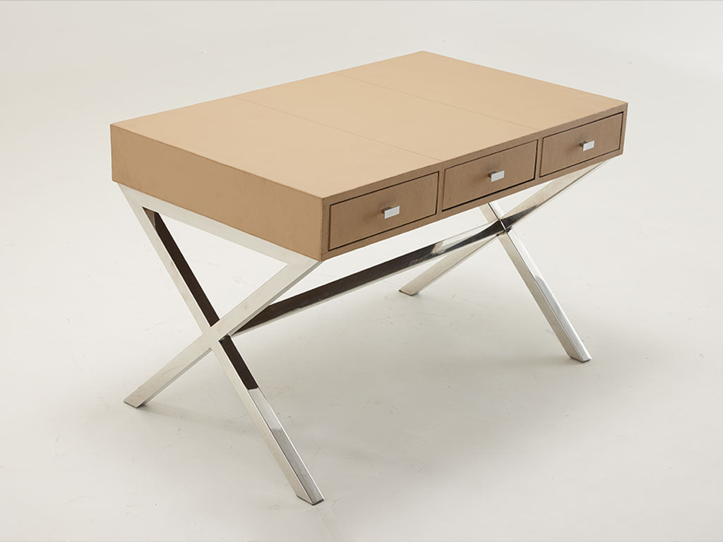 Introducing the epitome of sophistication – the Concord Study Desk. Designed with a touch of luxury, it showcases leather cladding, offering both elegance and durability. The steel legs provide a modern twist, while ample storage ensures functionality. Available in a range of colors and even in Mohair, this desk is a blend of style and versatility. Elevate your workspace with the Contemporary Wooden Study Desk, where designer aesthetics and practicality harmoniously unite.