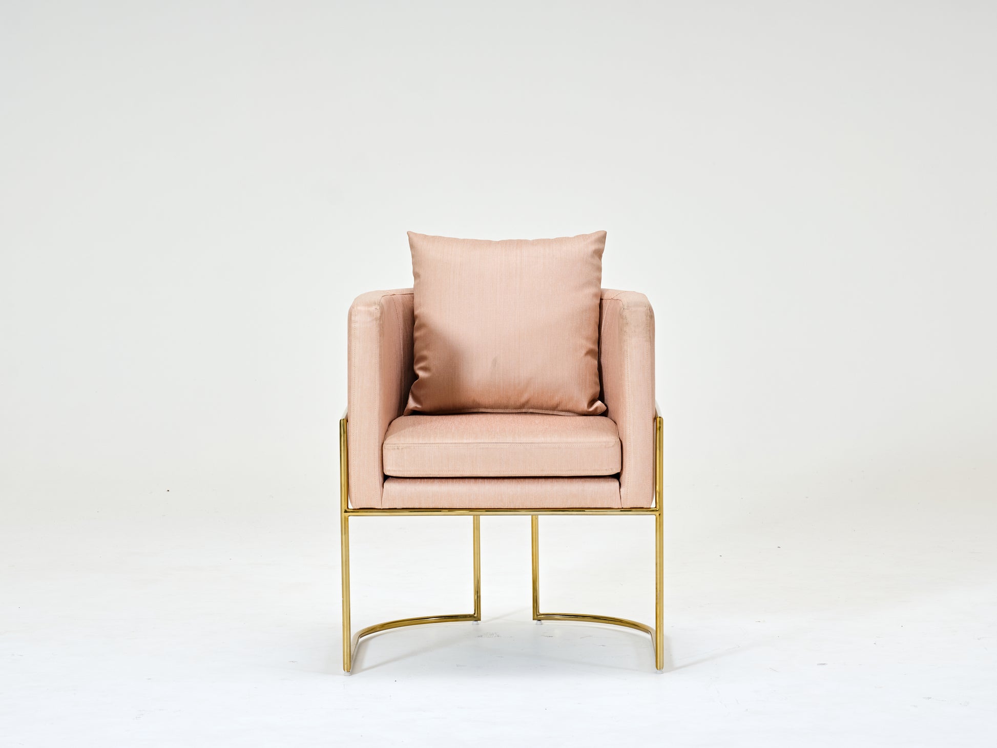 The Frame armchair boasts a sleek curved shape and comfortable fabric upholstery. Its sturdy construction ensures durability, while the curved design provides ergonomic support. This stylish and inviting chair complements any space, offering both aesthetic appeal and comfort for users.