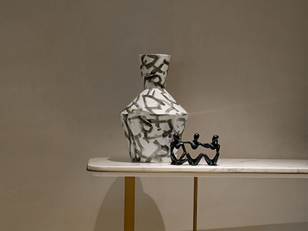 Introducing our White Vase with Black Veins, a striking piece of decor that combines minimalist elegance with natural beauty. Crafted with exquisite attention to detail, the white vase is adorned with delicate black veins, creating a captivating contrast that adds a touch of sophistication to any space.