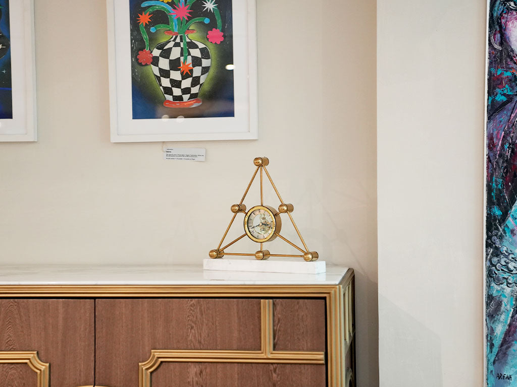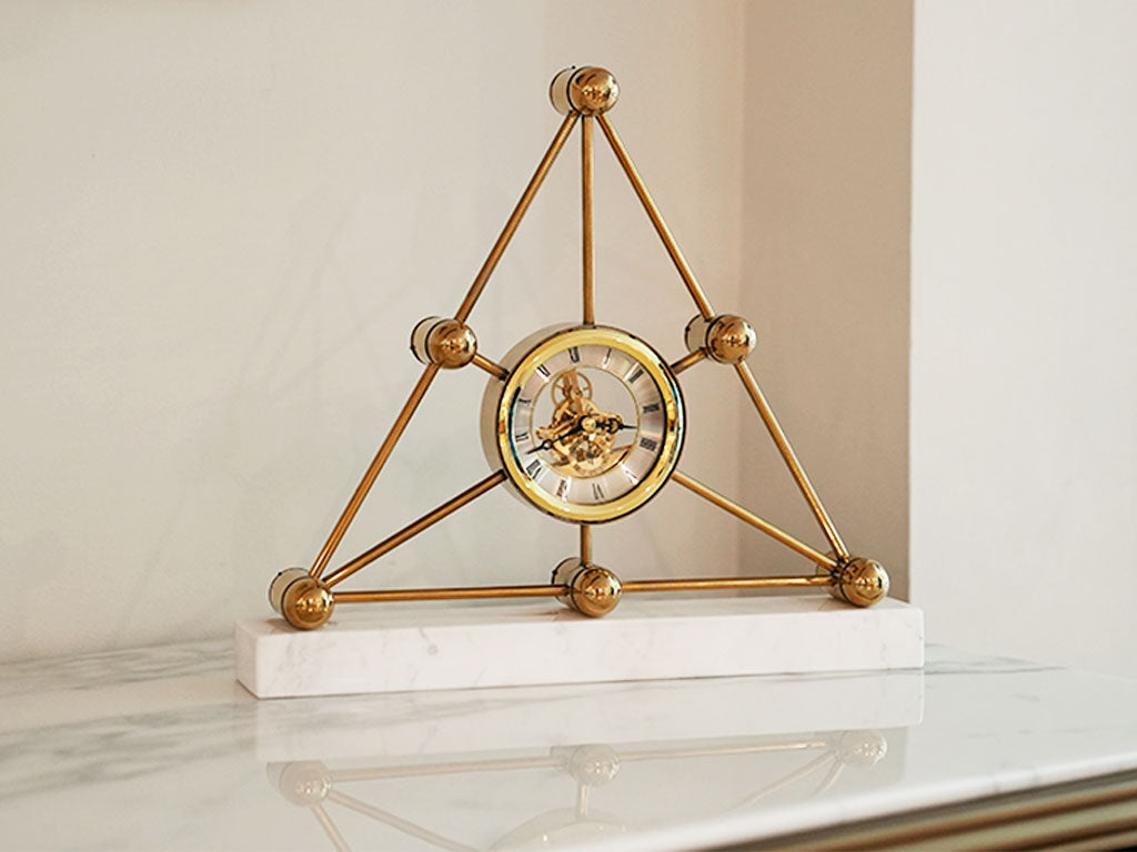 Introducing our Metal Pyramid Clock, a sleek and modern timepiece designed with a geometrical triangle shape. This eye-catching clock adds a touch of contemporary sophistication to any space, blending unique design with functionality.