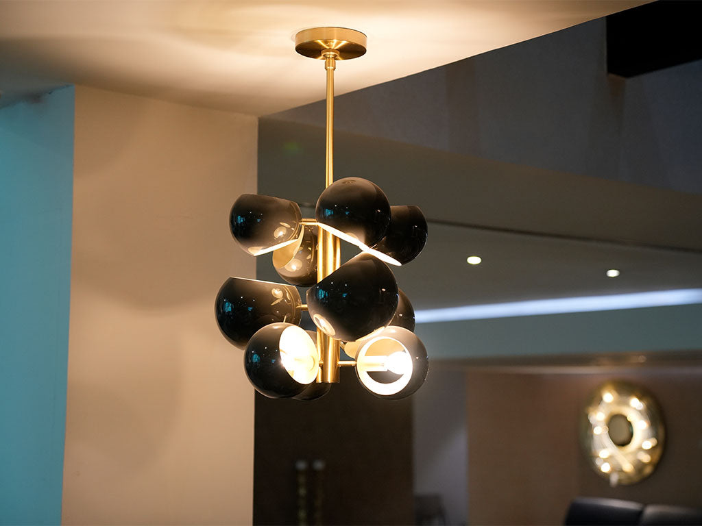 Introducing our exquisite ceiling chandelier, the MD21367-10. Crafted from iron and glass materials, this stunning fixture features a design reminiscent of black golden balls, adding a touch of luxury and sophistication to any room. Illuminate your space with elegance and style with this captivating chandelier.