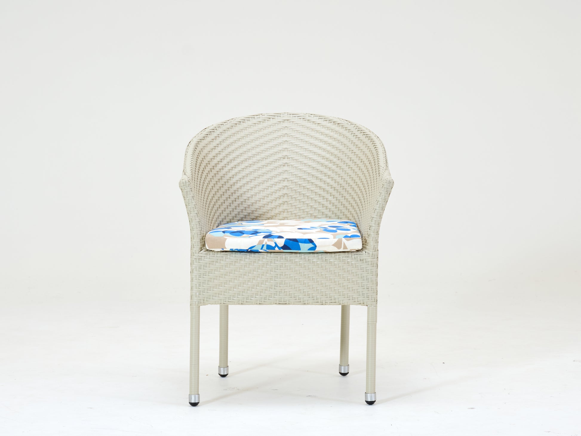 The Cumberland Outdoor Chair combines classic woven charm with modern outdoor durability. Crafted with a natural wicker-like texture, it features a curved backrest and arm design for added comfort. The chair is paired with a removable patterned cushion, enhancing both style and ease of use. Lightweight yet sturdy, it’s a perfect fit for patios, balconies, or garden lounges—bringing a cozy touch to open-air living.