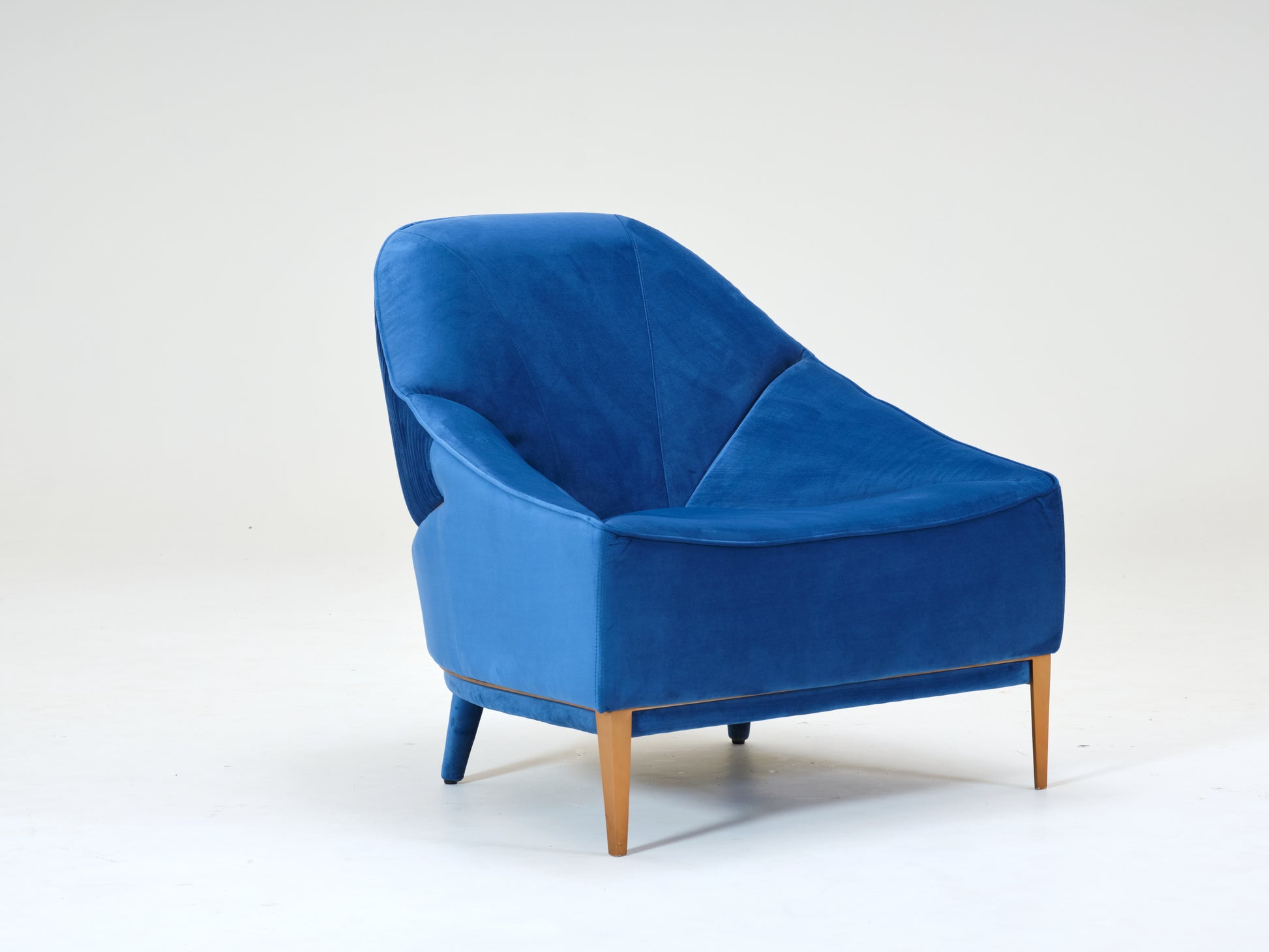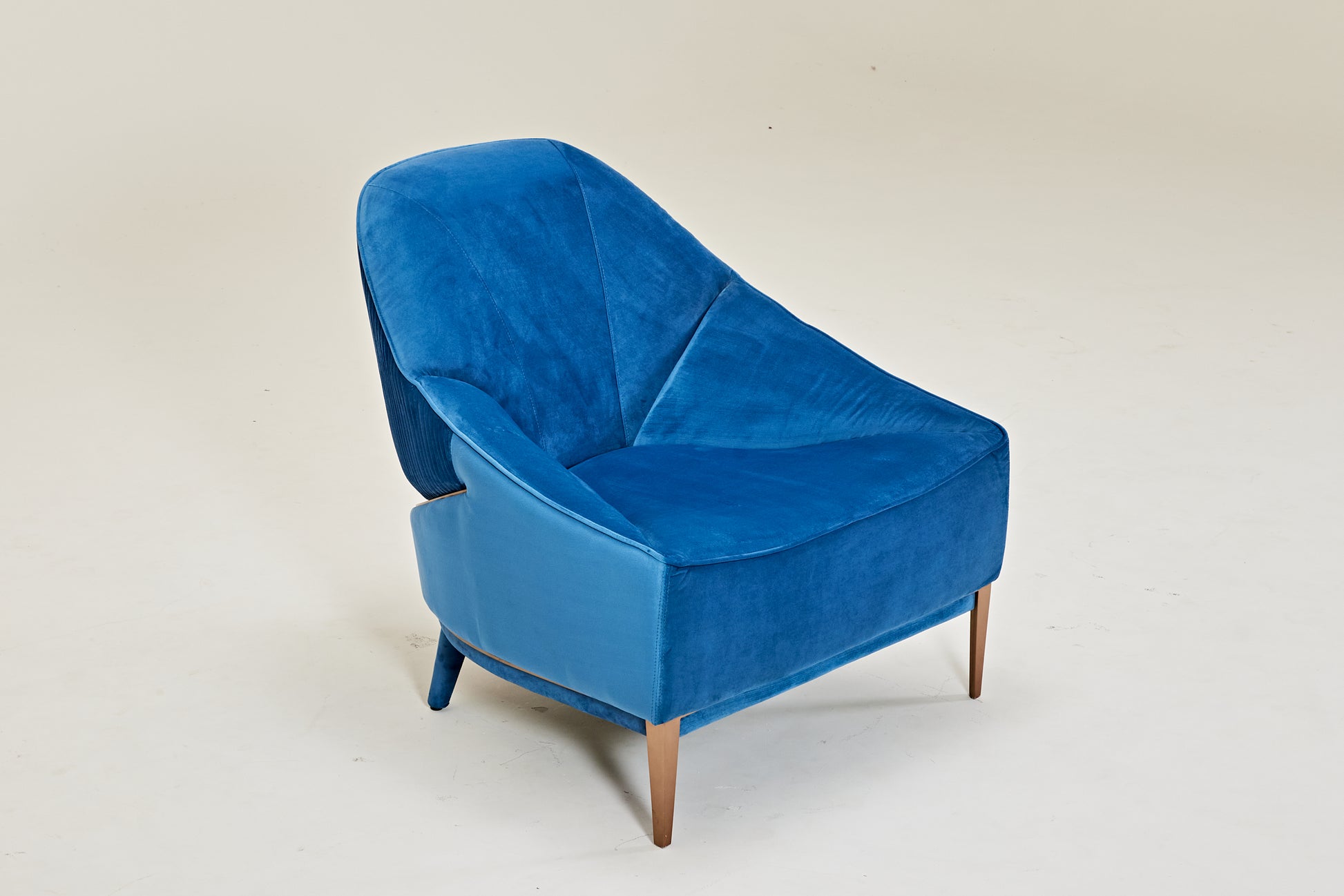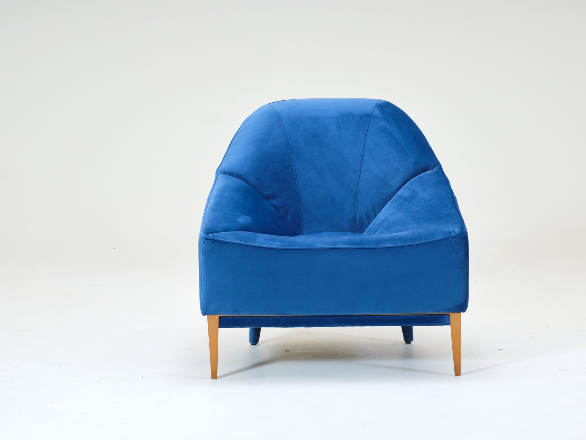 A shows-topper, Exo is meant to bedazzle and glamorize spaces. This leisure chair radiates class, coolness and beauty of incomparable standards. Upholstered in velvet fabric, the chair holds a perfect posture for leisure time. Skillfully designed, the elegant curve with clean lines and metal touch at the back just add a WOW element to its charm! This modern living room leisure chair sits upon four tapered SS metal feet highlighted in gold finish. It’s perfect to place at home in modern and contemporary aesthetics.