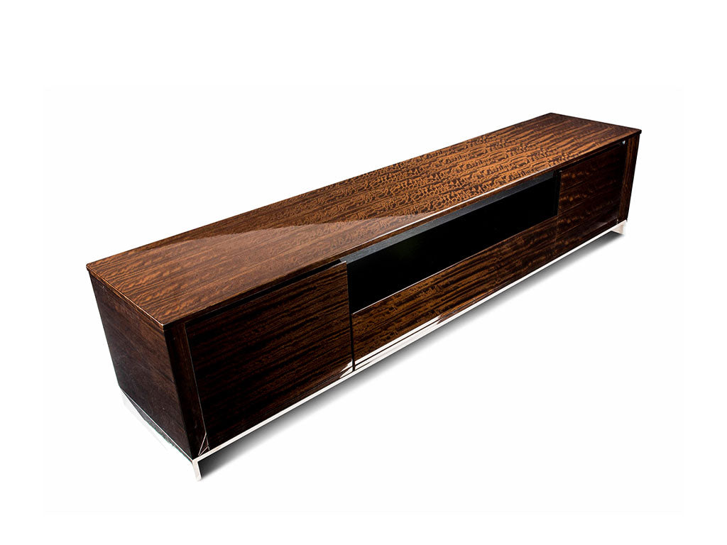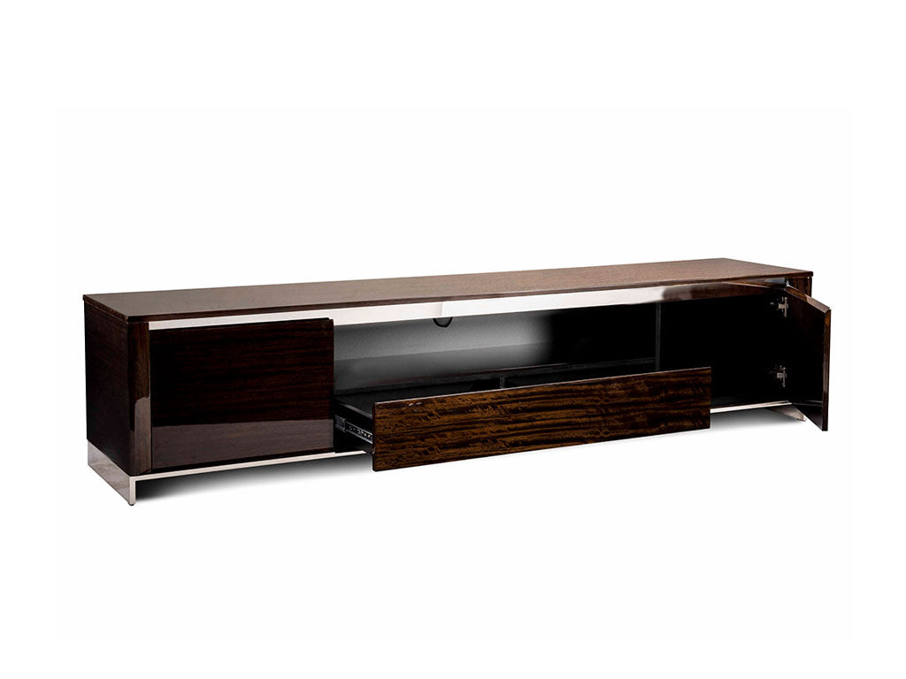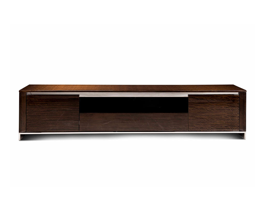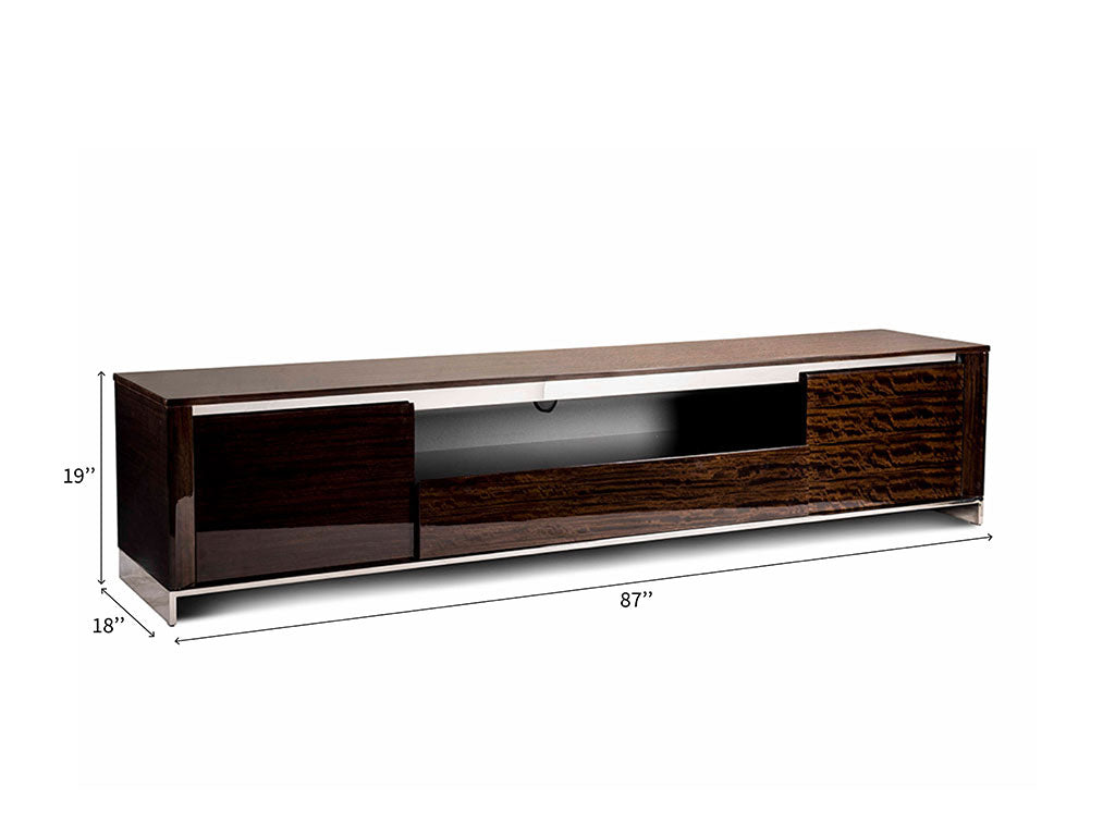 Based on the principle of combining simplicity and beauty together, this TV Unit eliminates any sophistication. With crisp construction using veneer wood and stainless steel, this furniture piece is enduring & resilient.