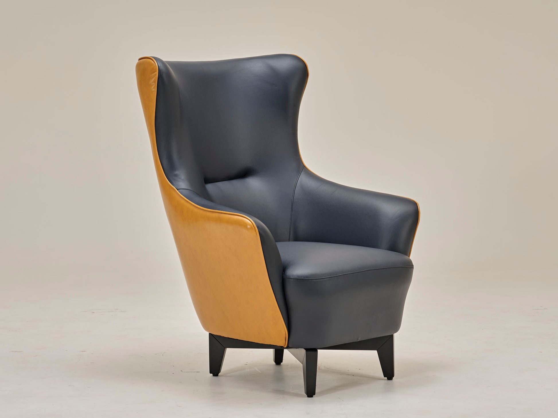 Defined by a refined modern vibe, Jade Leather Arm Chair features a solid frame, premium leather upholstery, and supportive cushioning. Its refined construction provides lasting comfort, while the sculpted wingback form and contrasting panel detailing enhance interior aesthetics through a balanced blend of function and elegance.