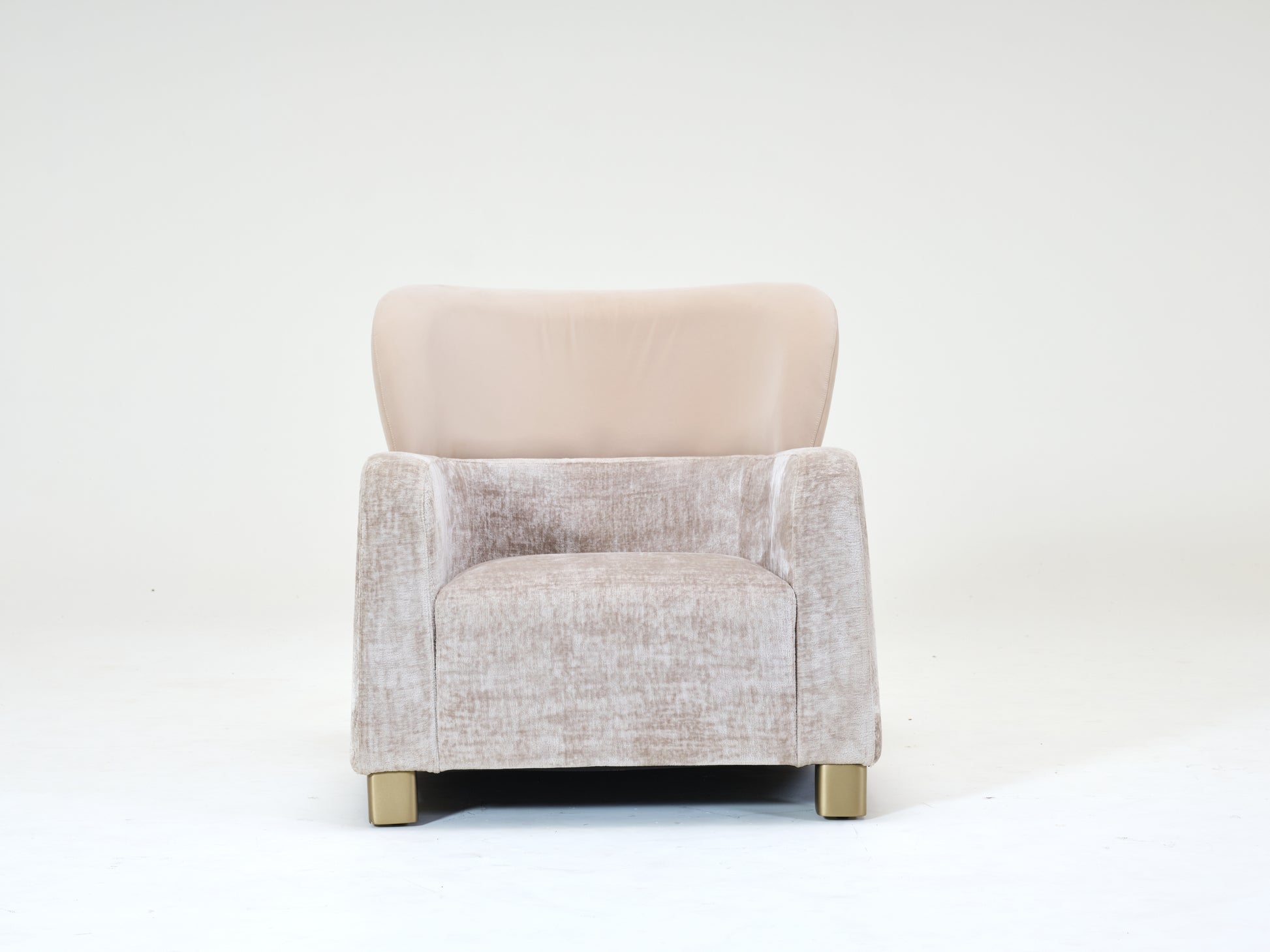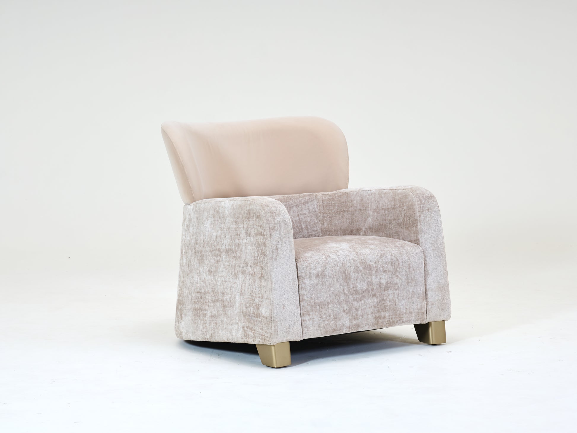 The Kang Chair combines sleek design and tailored craftsmanship, featuring a cushioned fabric seat with straight armrests and a luxurious fabric upholstered curved headrest. Perfect for modern bedrooms or private studies.