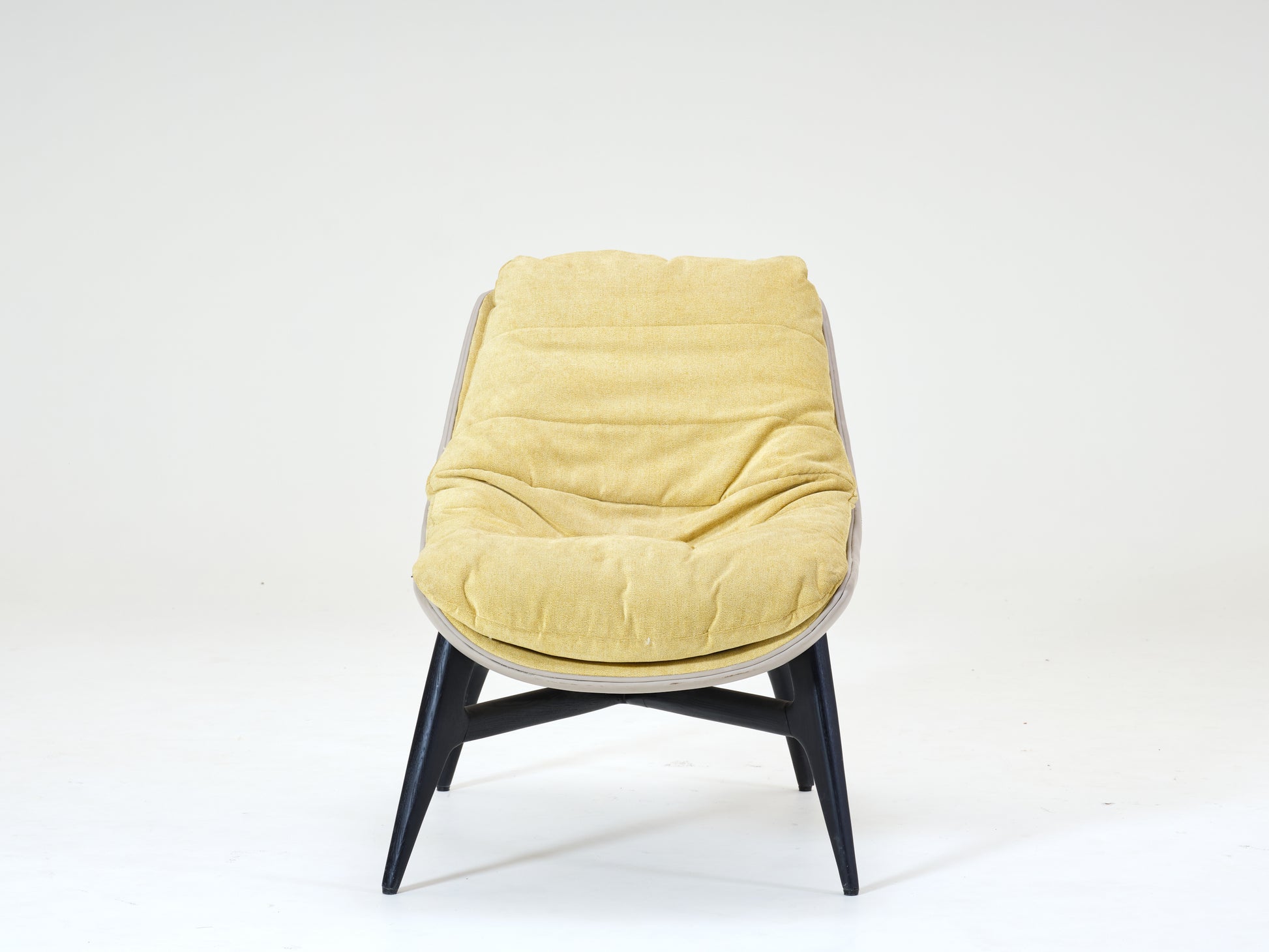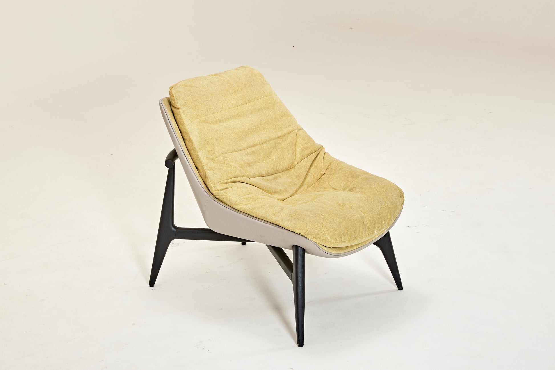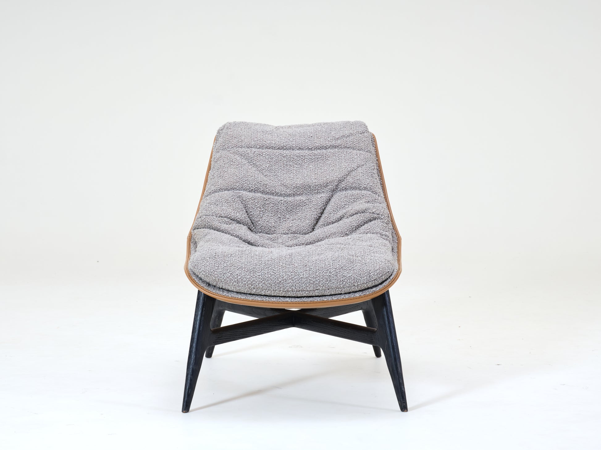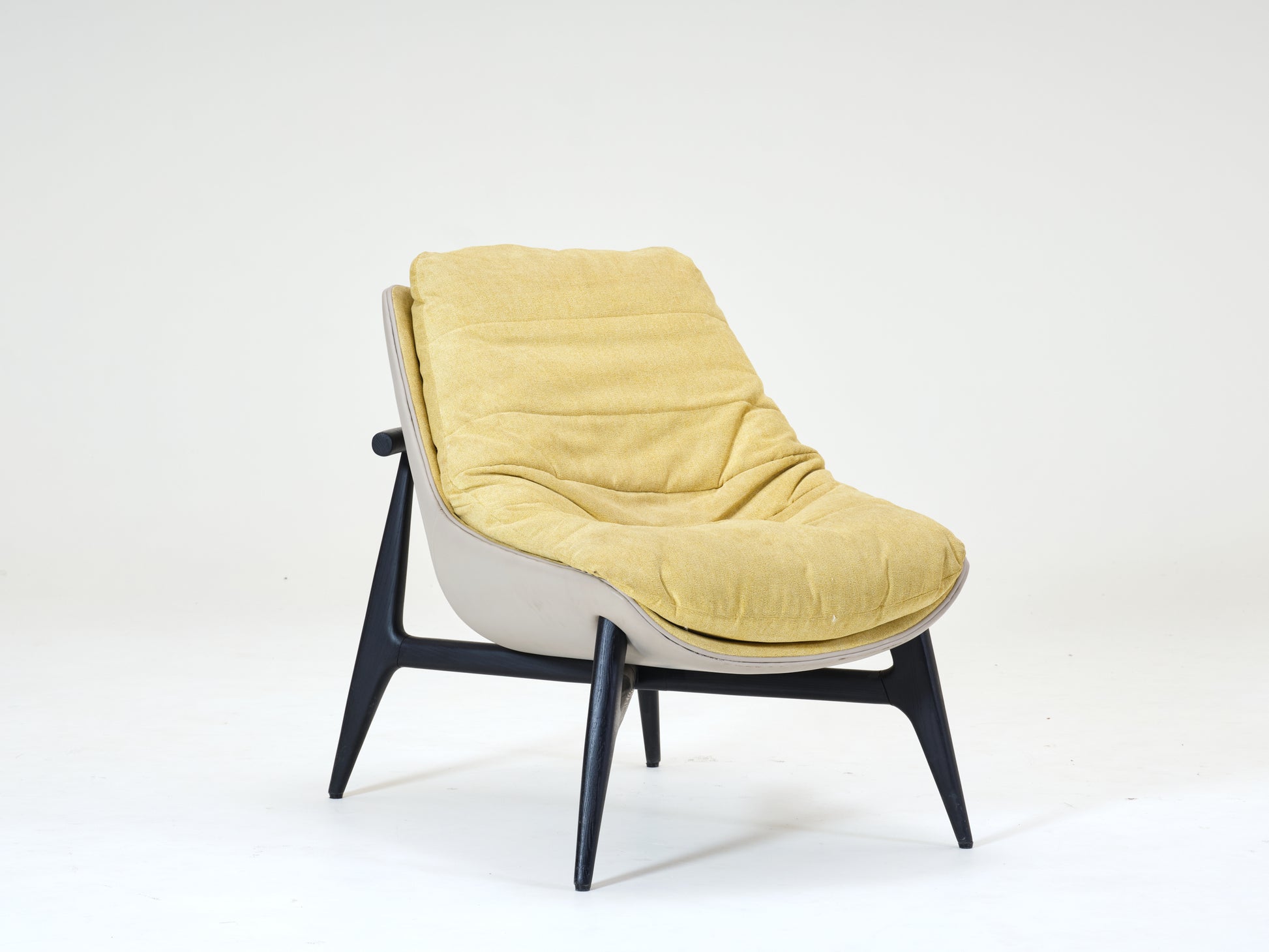 The Mansoon Chair is designed for those who value effortless comfort paired with sleek style. Its gently reclined frame with angled wooden legs supports a generously cushioned seat, creating the perfect lounge spot. Upholstered in soft fabric, it delivers a laid-back, contemporary aesthetic ideal for modern living spaces.