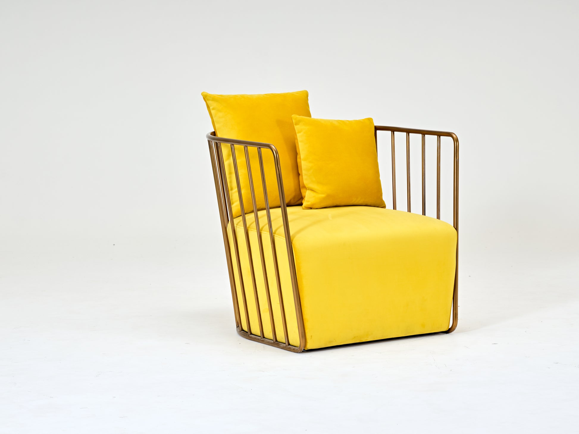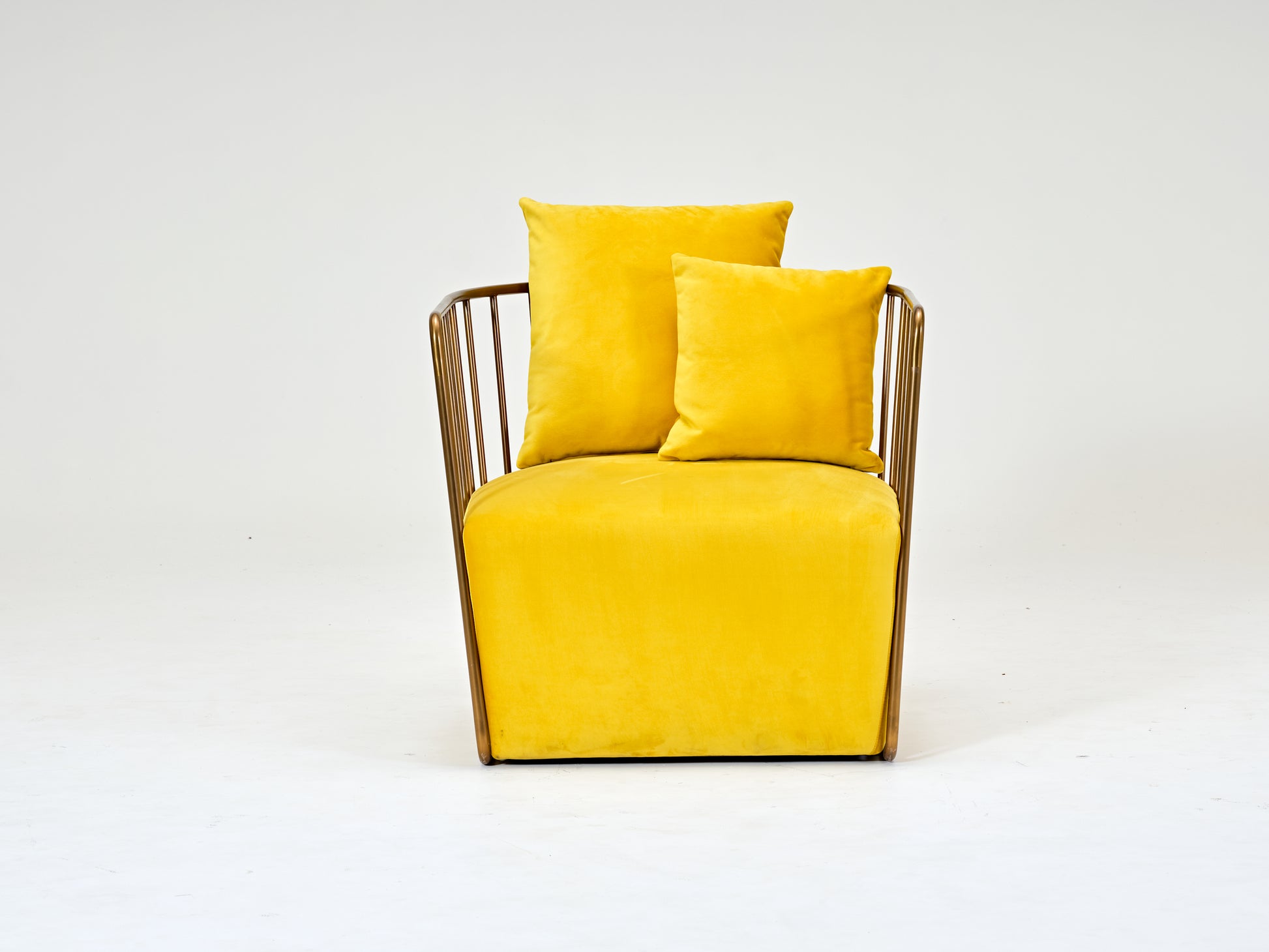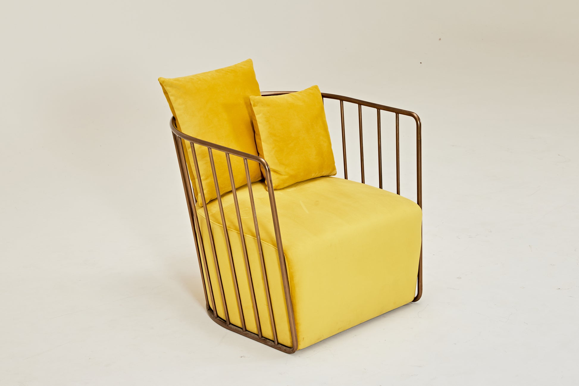 Nest Chair would be ideal for any room in your living spaces. This classic mid-century design can be used as an accent chair. Metal frame is tapered and finished in rose gold. The seat is upholstered in leatherette for comfort and style.