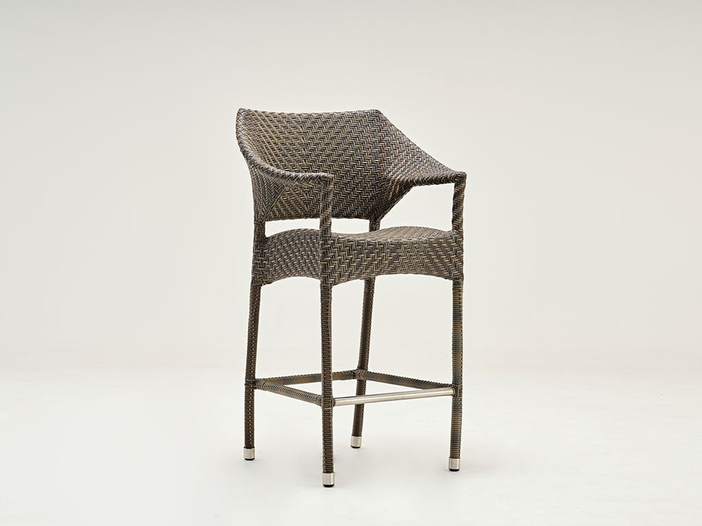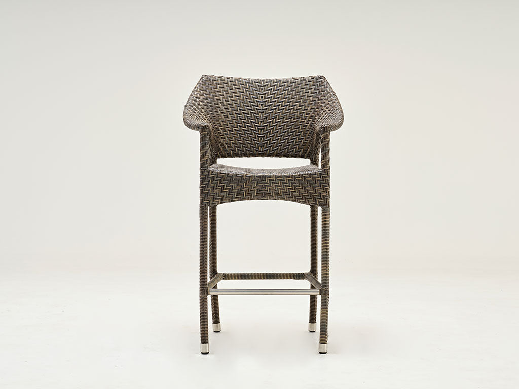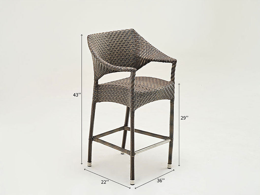 Complete your outdoor seating ensemble with this stylish 43" bar stool. Wrapped in breezy synthetic rattan and supported by a sturdy aluminum frame, it's perfect for poolside bars or patio dining sets. Hand-woven rattan upholstery and backrest add an impressive touch.
