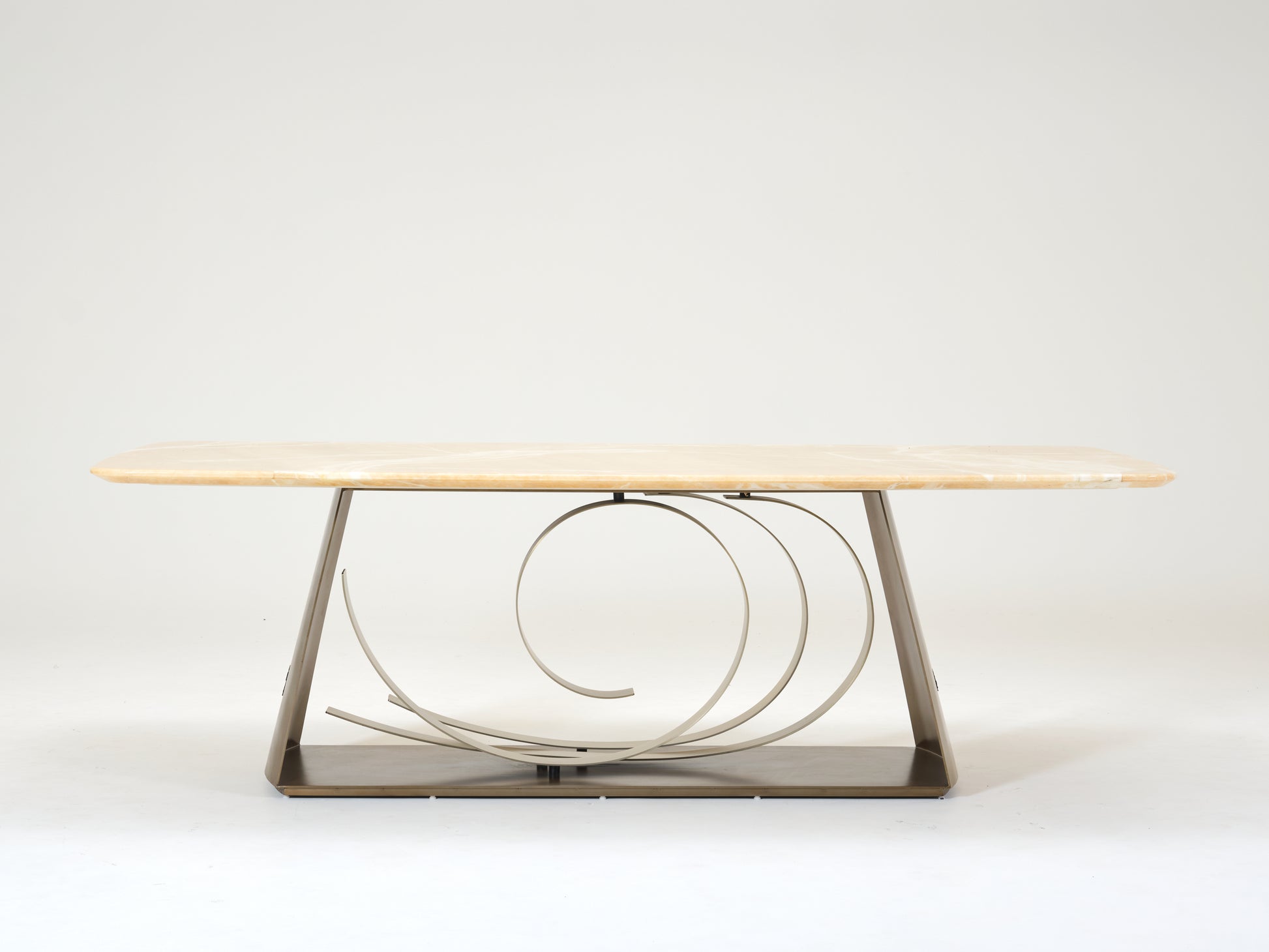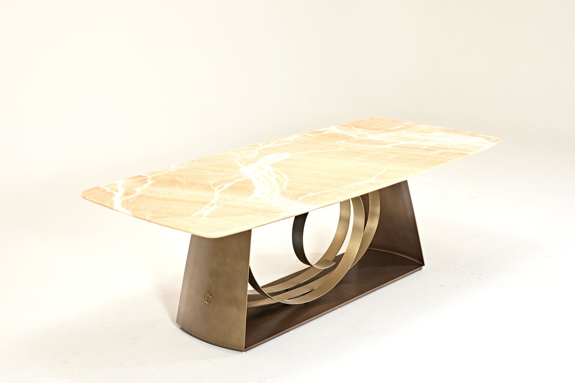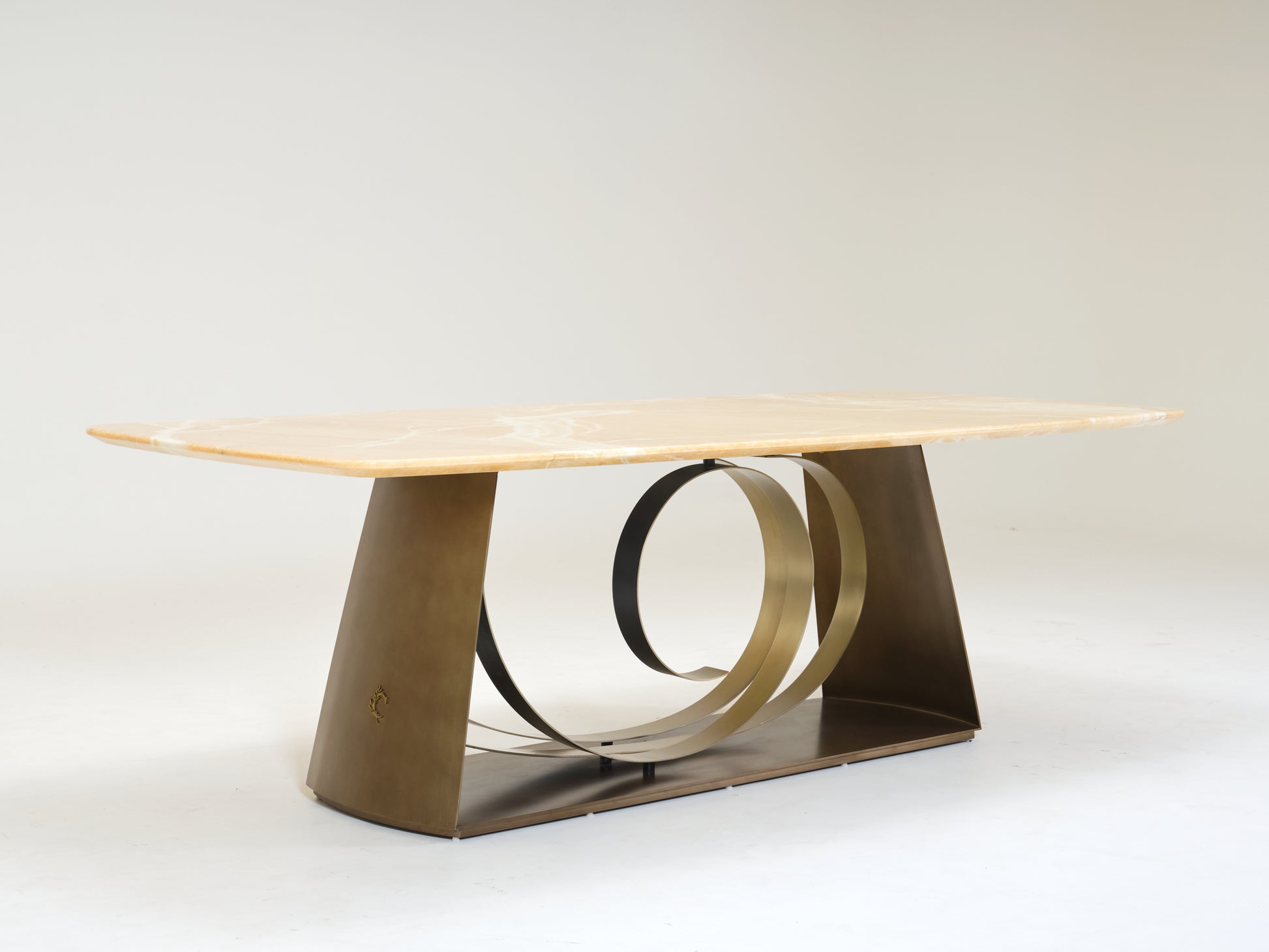 The Ribbon Dining Table is a true work of art, blending elegance with modern design. Its marble top offers timeless sophistication, while the sculptural ribbon-like metal base adds movement and charm. Perfect for luxurious dining spaces, this table becomes the centerpiece of gatherings, reflecting both functionality and artistic expression in one striking piece.