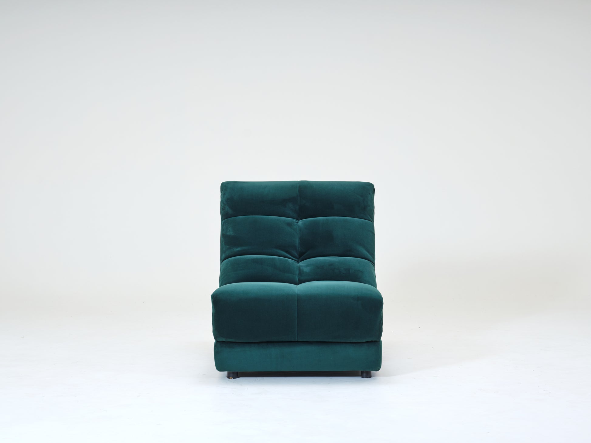 The Segment 1 seater is a plush, deep-seated armless lounge chair that embodies comfort with a sleek, modern touch. Its tufted upholstery and bold silhouette make it perfect for both modular setups and as a standalone statement piece. Ideal for contemporary interiors, it adds a layer of luxury and relaxation to any space.