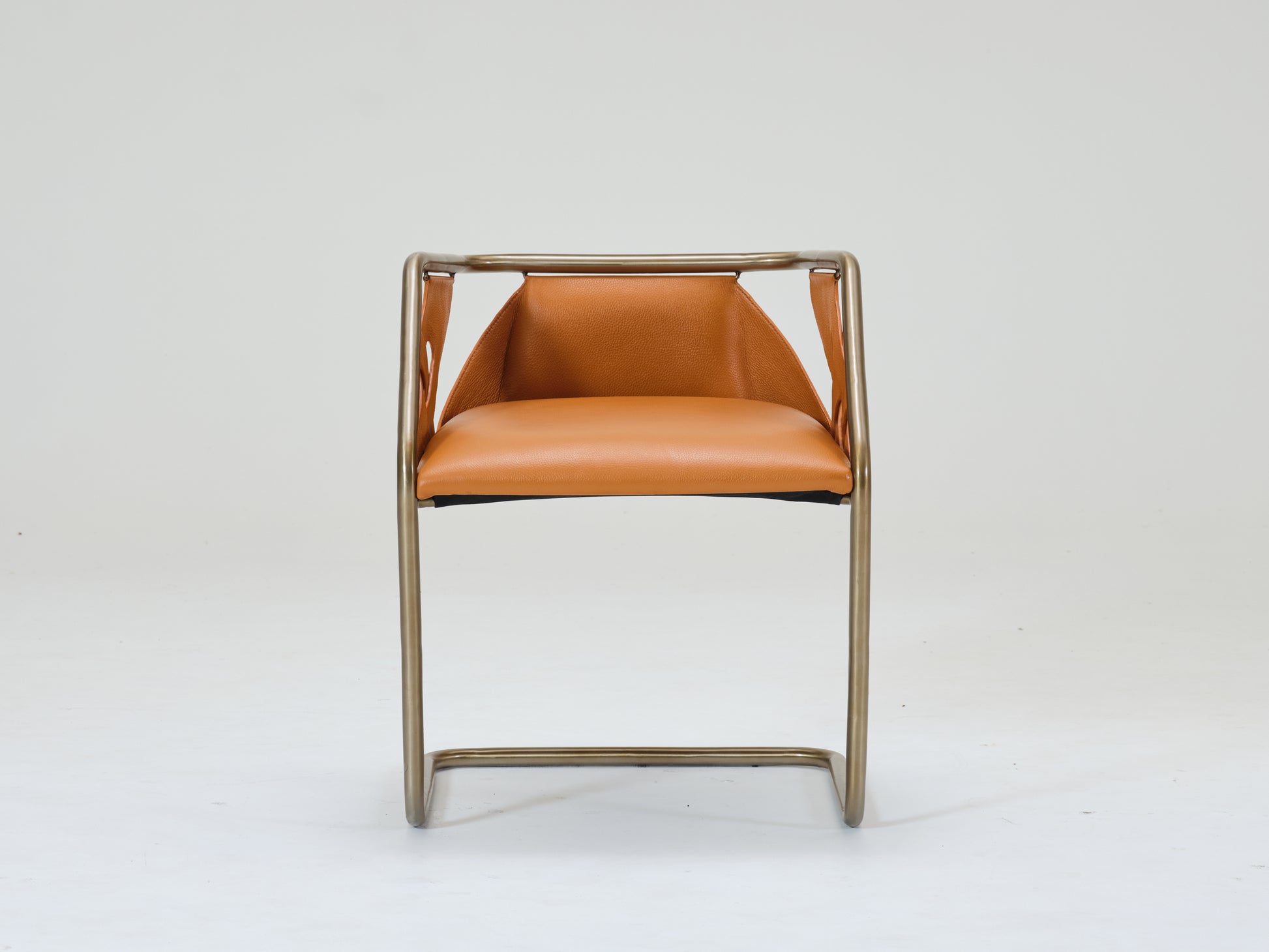 Our Fold Arm Chair embodies sleek and modern design. With a low back and a seat upholstered in white leather, it exudes a luxurious feel. The metal frame with its cantilever design ensures durability and adds a touch of sophistication. Enhance your space with this stylish and comfortable arm chair, perfect for any modern interior.