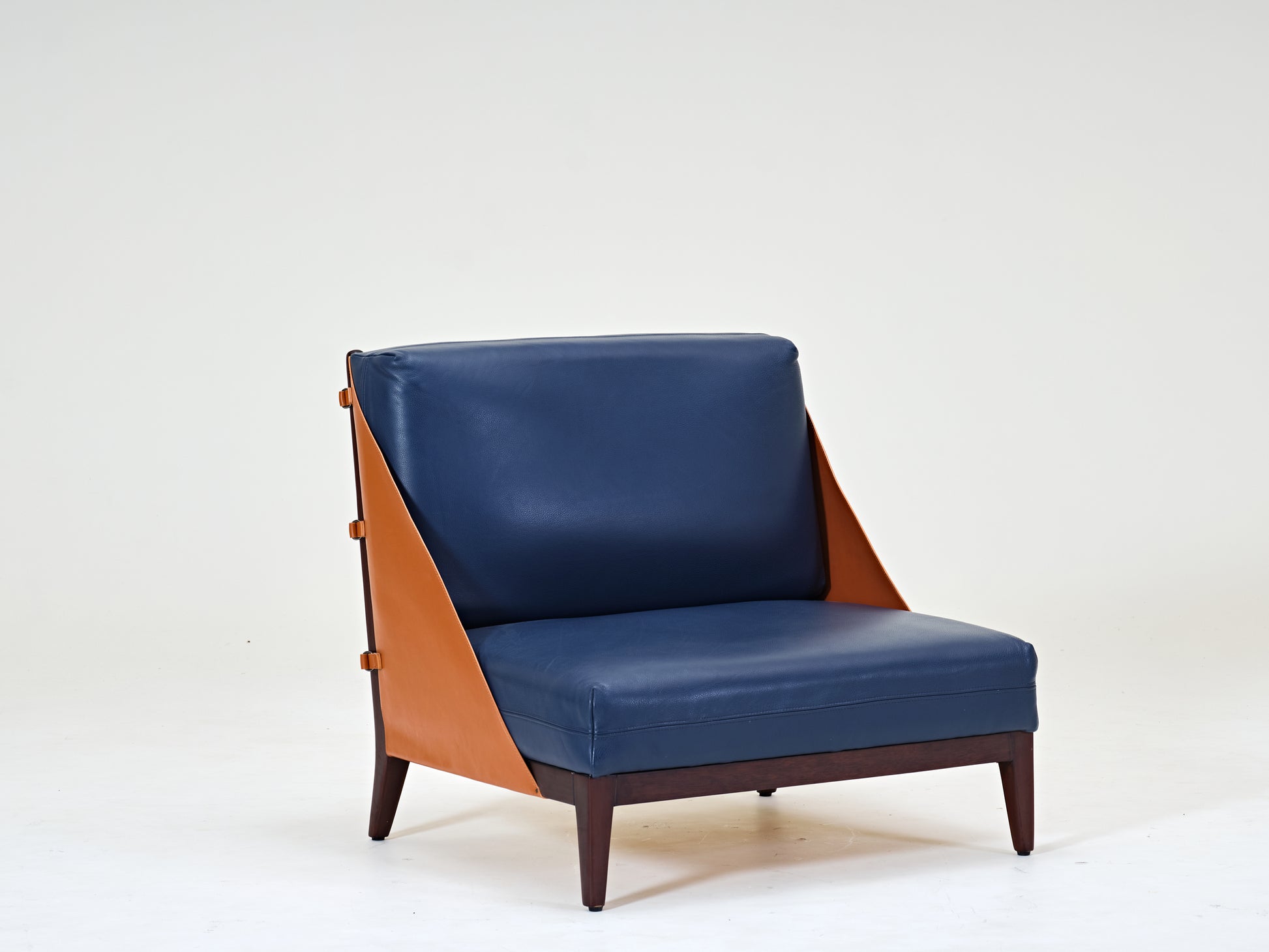 The Wendy Chair is a refined blend of elegance and comfort. Upholstered in rich leather, it features a sleek seat and backrest complemented by smooth wooden legs. The gently sloped arms and tailored details create a timeless design, making it a versatile choice for both modern and classic interiors.